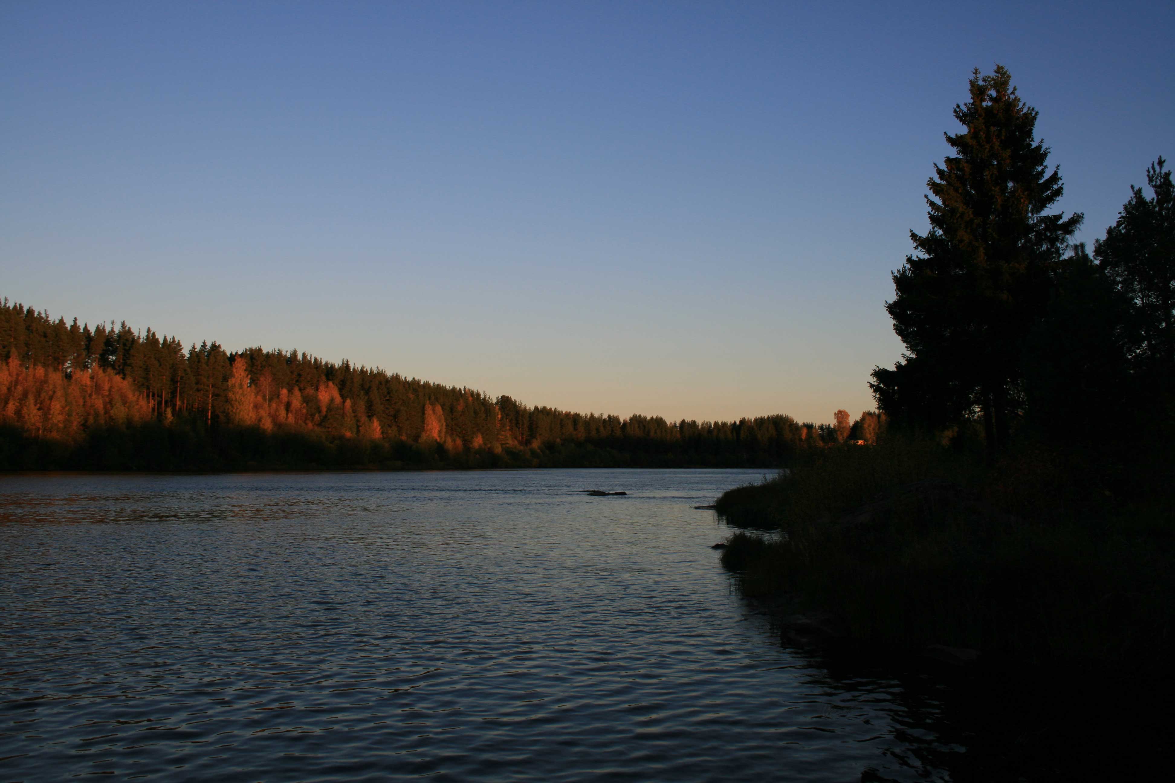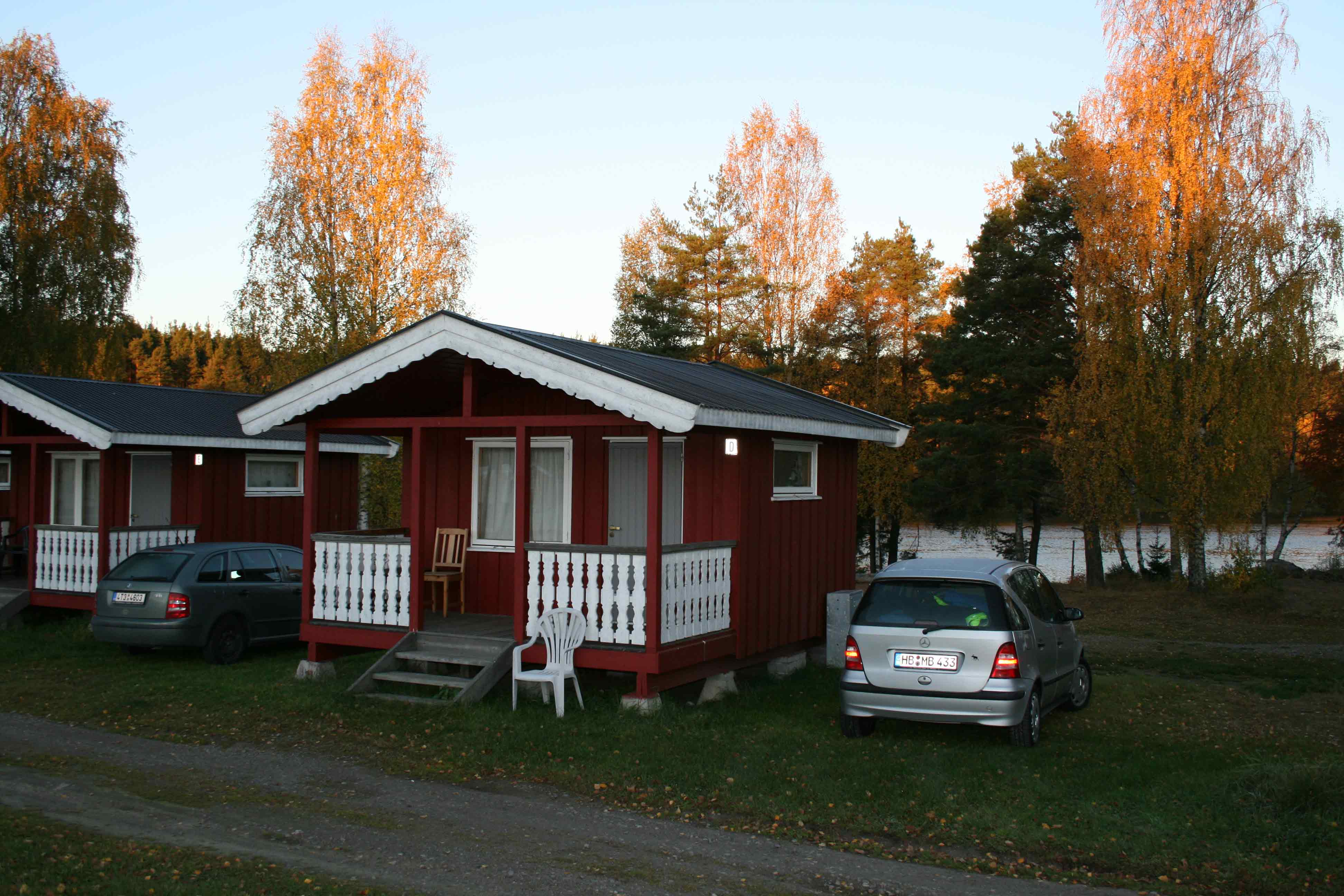 Morgens bei der Campingplatzhütte in Elverum. Im Hintergrund die Glomma
